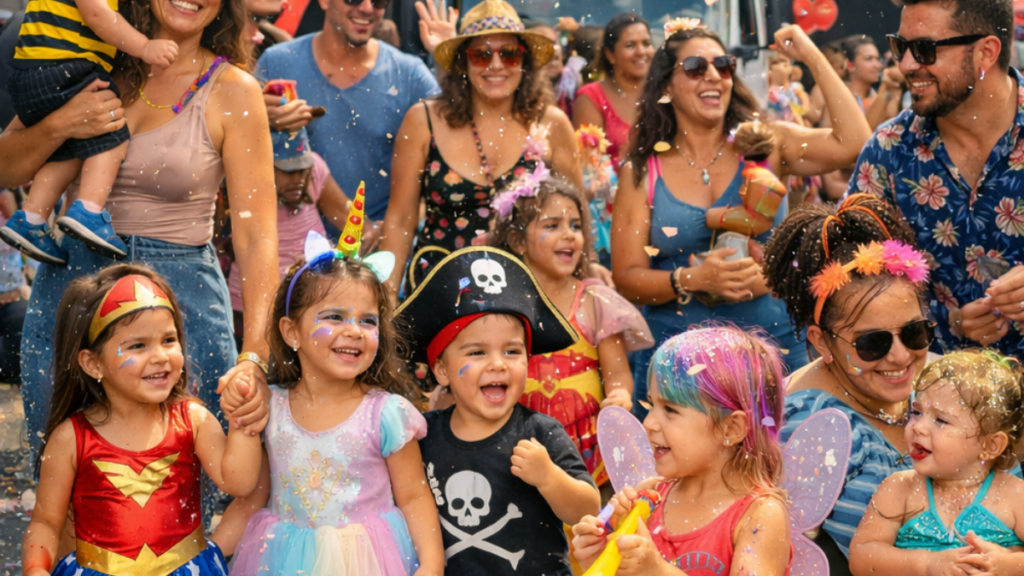 Sabe o que eu aprendi nesses anos todos de carnaval com crianças? O melhor bailinho não é aquele com a fantasia mais cara, a maquiagem mais elaborada ou o bloco mais famoso. É aquele onde você e seus filhos se divertem DE VERDADE, com segurança e tranquilidade.