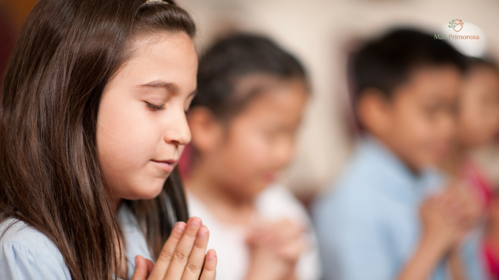 Para os pequenos: “Oração é como conversar com Deus ou pensar nas coisas boas que temos. Pode ser agradecer antes de dormir, pensar em coisas bonitas ou desejar que as pessoas fiquem bem.”