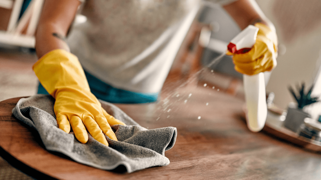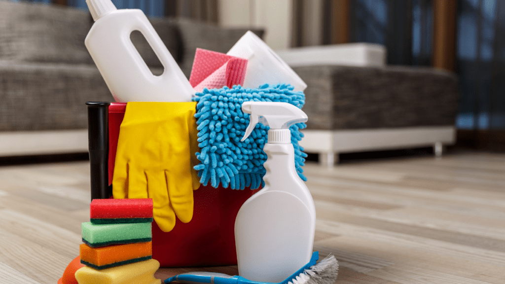 5. Tenha produtos de limpeza acessíveis Deixe kits de limpeza em locais estratégicos (banheiro, cozinha, quarto) para facilitar a limpeza rápida.