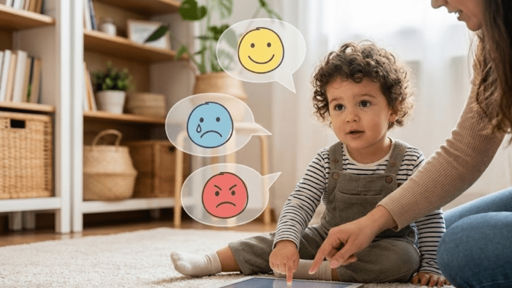 Ajude seu filho a desenvolver um vocabulário emocional adequado à idade. Ensine palavras simples como “meu”, “não”, “parar”, “com raiva”. Para bebês, ensine sinais simples ou gestos que possam usar para comunicar necessidades.