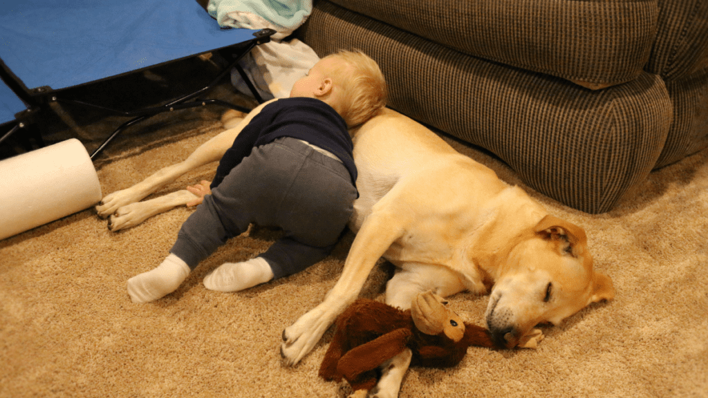 - Há risco de acidentes involuntários (cachorro pisando ou esbarrando no bebê)