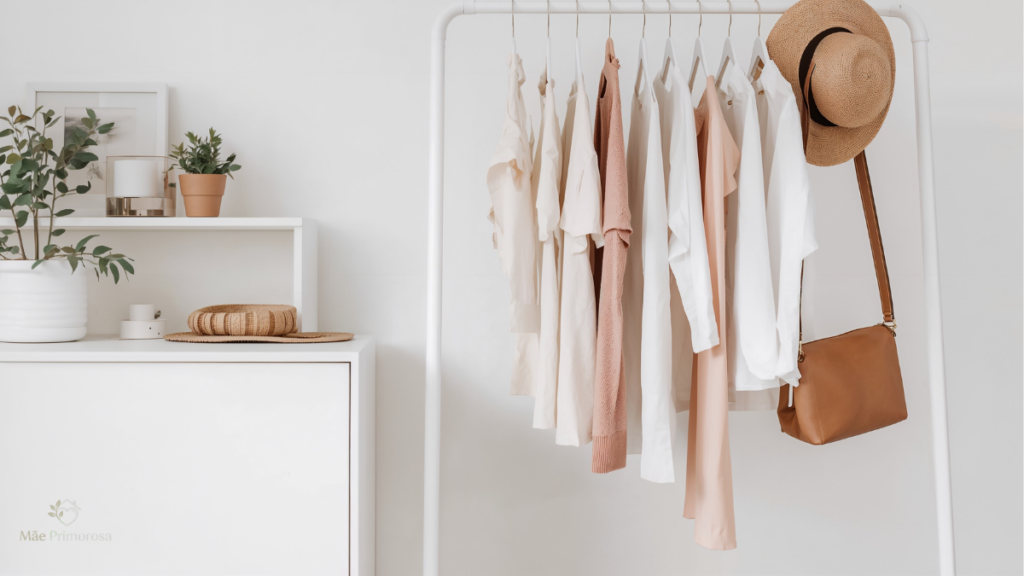 A boa notícia? Dá pra resolver isso melhor do que você imagina. Neste guia, nós vamos te mostrar exatamente quais peças investir, o que evitar, como montar um guarda-roupa cápsula para gestantes no calor e ainda como organizar tudo isso sem transformar mais um domingo em caos. Vem com a gente.